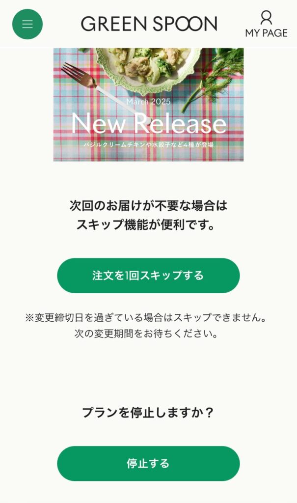 ※スキップではなく、定期購入の停止をしないと次のタイミングで届いてしまうのでご注意ください。