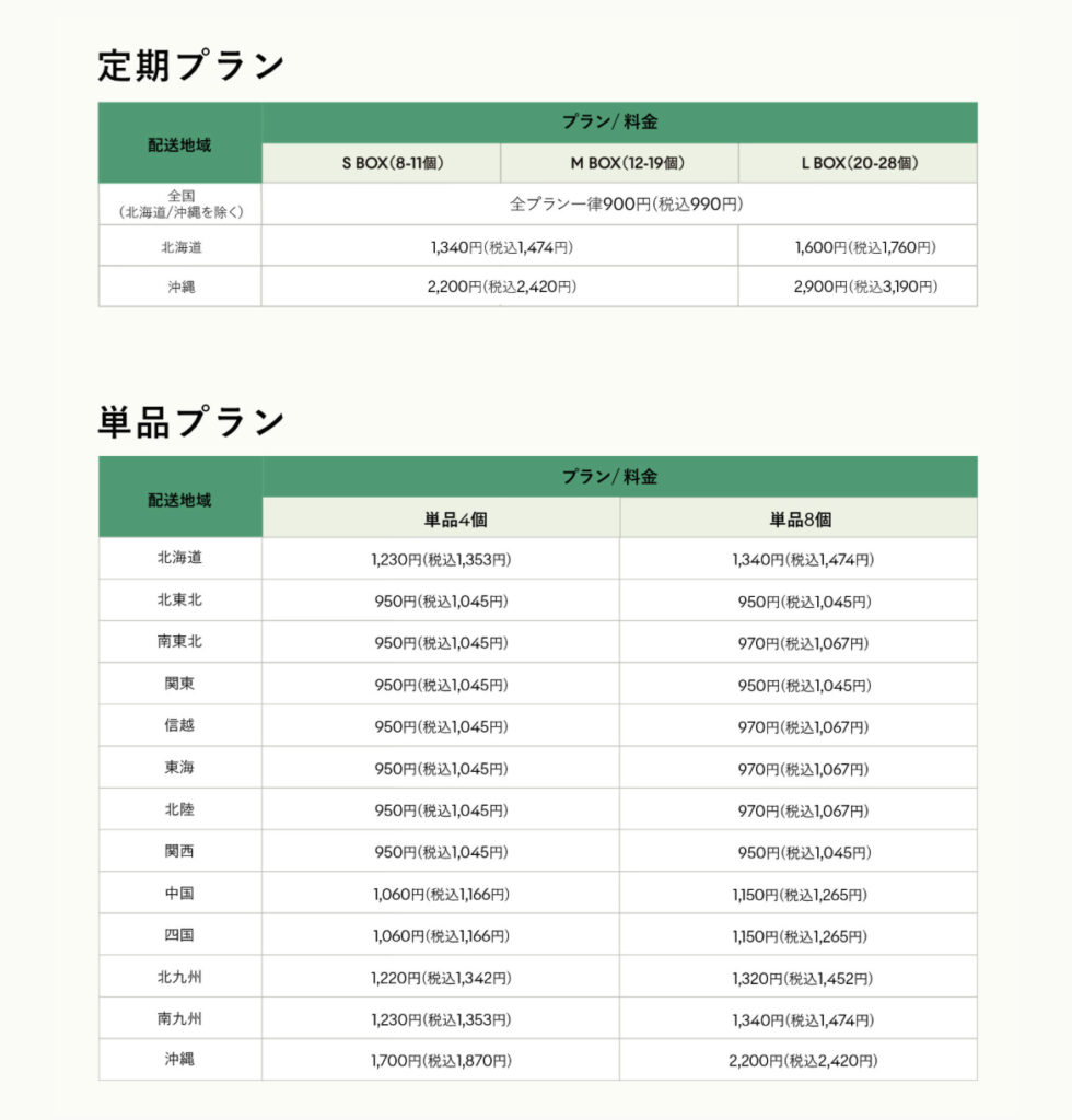 実際に使うとなると単価が最も安くなるサブスクリプションプランのL BOXを頼む形になると思いますが、それでもメインディッシュは811円(税込み)で、これに加えて送料(下記)が都度かかります。