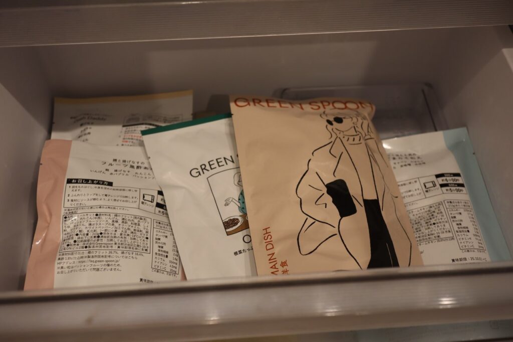 また、一人暮らしの場合冷凍庫はあまり大きくない場合がほとんどだと思いますが、グリーンスプーンは箱ではなく袋に入っており嵩張らないのも地味にありがたい。