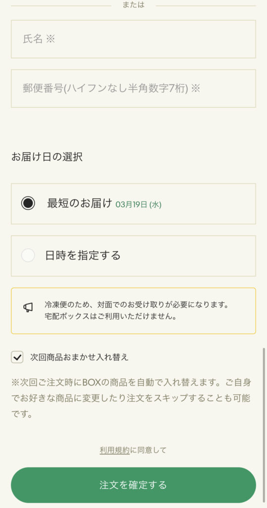 最後に配送情報を入力して、「注文を確定する」をタップすれば注文完了です。