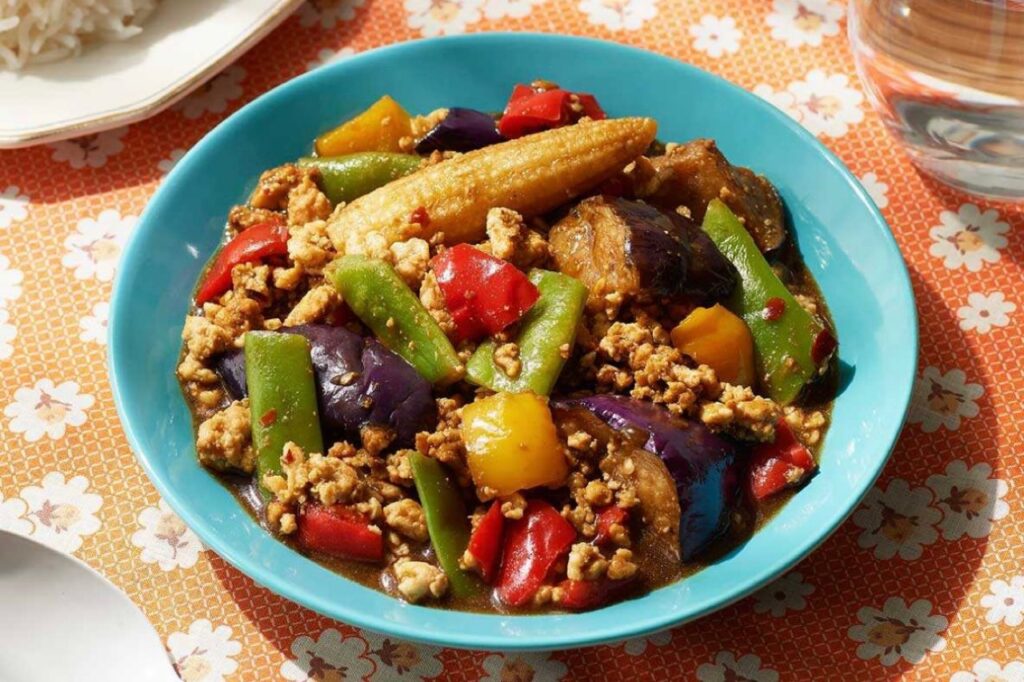 • 彩り野菜の本格チキンガパオ