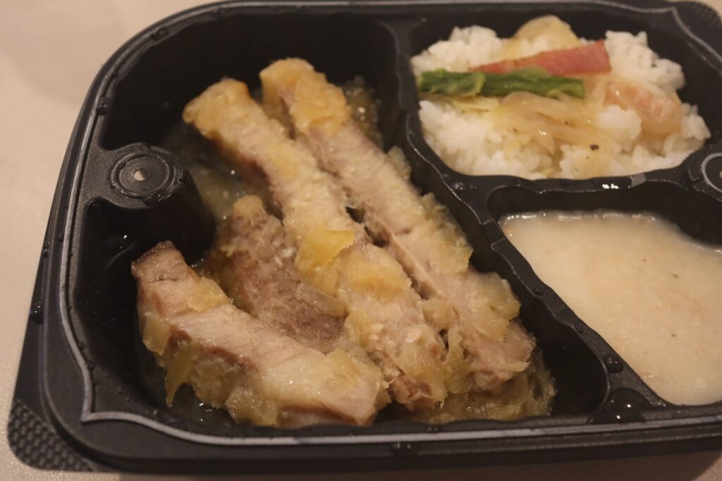 左のイメージ写真のようなゴロッとした角煮は一切れだけで、残りの2切れはやや脂身気味かつ小さめでした。