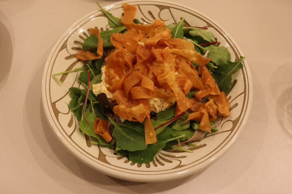こちらも新鮮です。春巻きの皮と生ハムと自家製タルタルソースをのせていただきました。